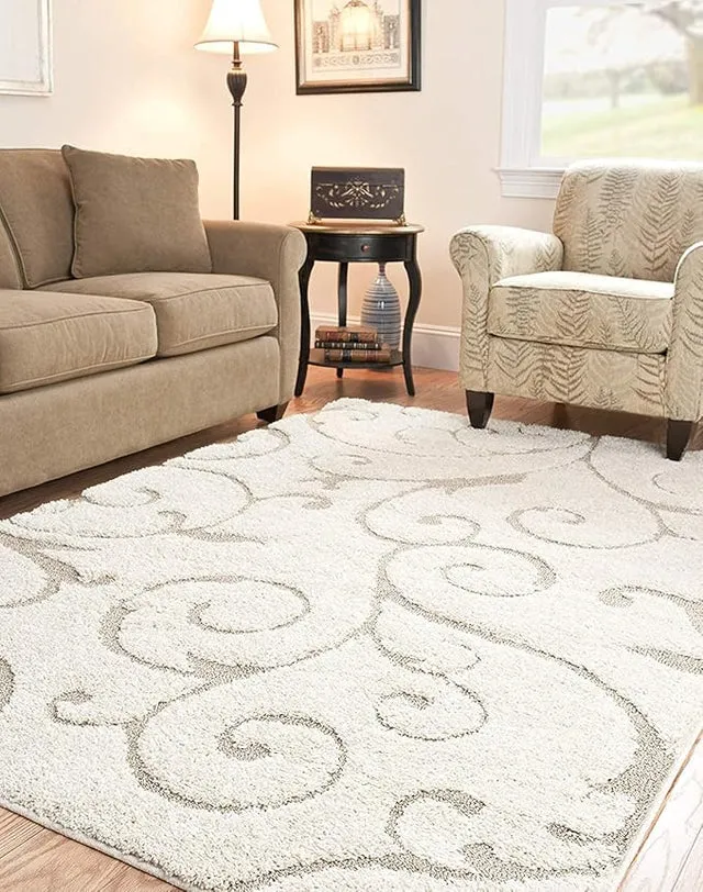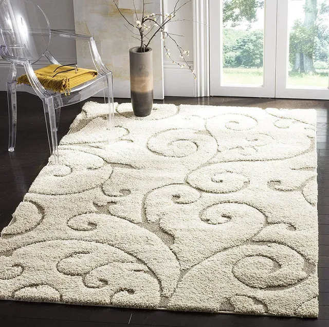 Beige Floral Microfiber Handcrafted Hi-Lo Super Soft Shaggy Carpet