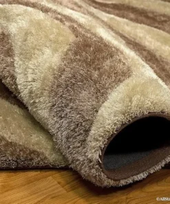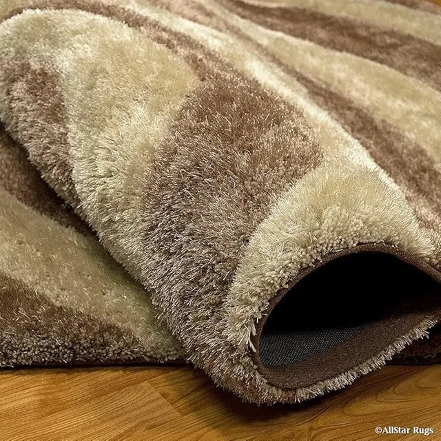 Beige & Ivory Microfiber Handcrafted Super Soft Tornado Shaggy Carpet