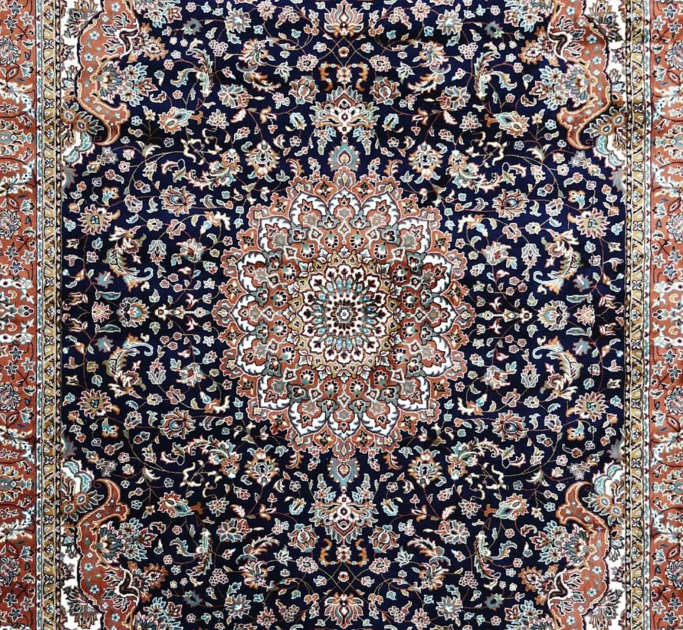 The Premium Navy Persian-Style Silk Carpet showcases classic Persian craftsmanship enhanced by a deep navy color palette. Designed for elegant living rooms and bedrooms, this carpet features intricate traditional motifs that add depth, richness, and a refined statement to both contemporary and classic interiors.
